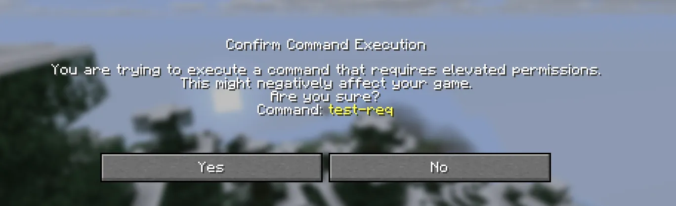 At first glance, this works just fine. But it does have a very big flaw - since the player’s client is not aware of the requirement, it still shows the command as executable, even if the requirement resolves as false. But if the client tries to run the command, the server reports that this command doesn’t exist (meaning the requirement was not met):